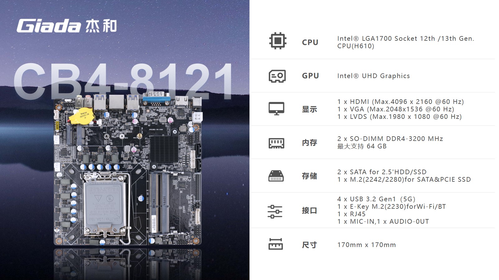 針對客戶的多任務處理需求,主板選用2個DDR4 SO-DIMM插槽,支持高達64GB的內存容量,同時配置支持PCIe 3.0通道的M.2接口以及2 x SATA接口,用于連接硬盤。