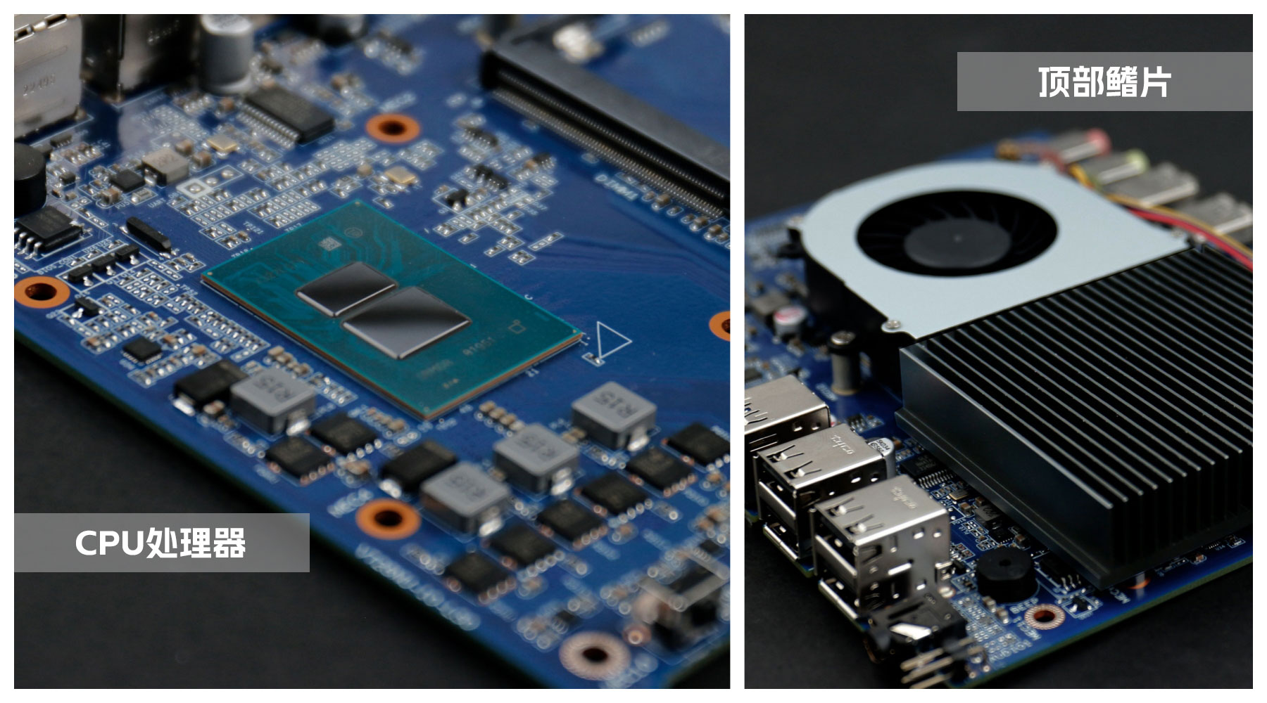 主板是杰和桌面云終端Y-BOX S2的核心部件,拆開主板上的頂部鋁制鰭片與風扇,整體配色是常規的深藍色,由杰和自有工廠傾力打造,CPU采用板貼的形式,表面涂了一層散熱膏用于導熱,可以支持intel新一代Alder Lake-N平臺處理器,為英特爾首款基于 7nm 的產品線,最高可支持到8核,采用大小核(E核、P核)的全新架構,在同等功耗下有更優異的性能表現。