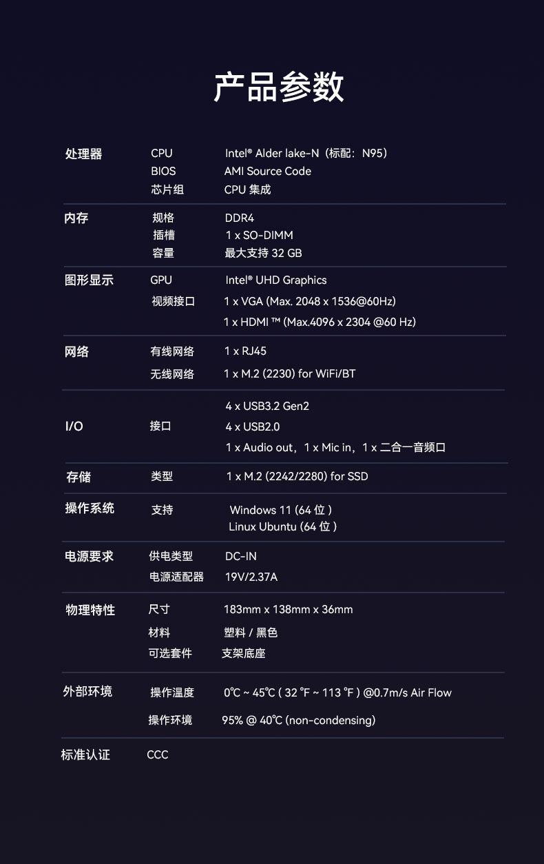 針對桌面云終端Y-BOX S2的測試項目中,最值得關注的是性能測試的跑分數據和穩定性測試內容,這能直觀影響主機在使用過程中的穩定性和用戶的使用體驗。針對性能測試,我們選擇了將Y-BOX S2與前一款更迭產品Y-BOX S1進行對比分析,Y-BOX S2支持Intel® Alder lake-N處理器,Y-BOX S1支持Intel® Jasper Lake,并分別選取了以下配置: