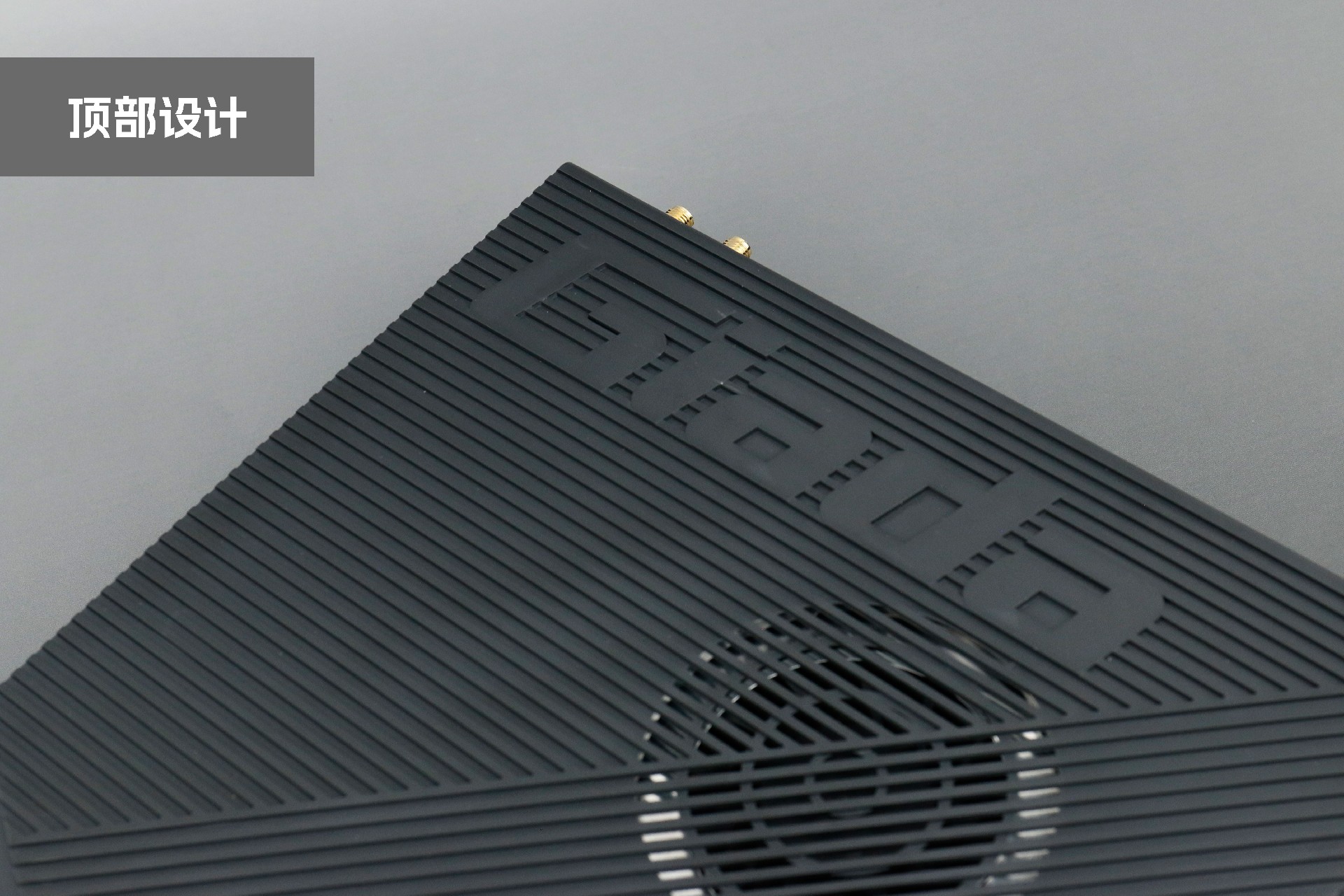 打開杰和桌面云終端Y-BOX P3,你會發現它的結構并不是常見的四方體設計,而是在轉角處好似被切割開一個角,切割出來的面積為指紋識別開機鍵。它的外觀為優雅的銀灰配色,機身正面厚重感十足,頂部依然沿用黑色啞光柵格并延伸至整機背面,磨砂塑膠材質殼,印刻杰和Giada品牌名;其他三面則為銀灰色,兩側是蜂窩式通風口設計。