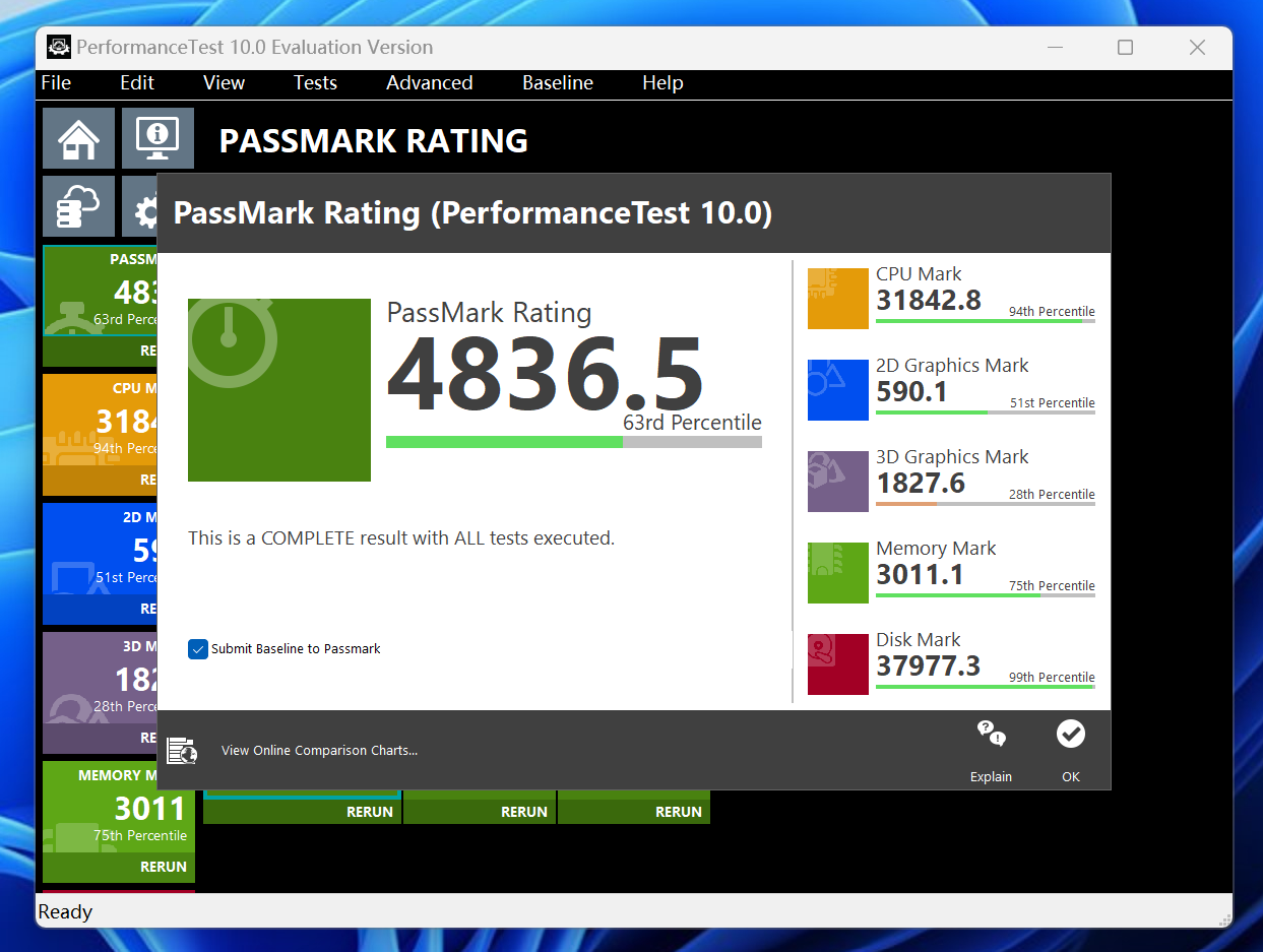 本次測試中,Y-BOX P3綜合得分4836.5,CPU Mark得分31842.8,無懼處理高負載任務。