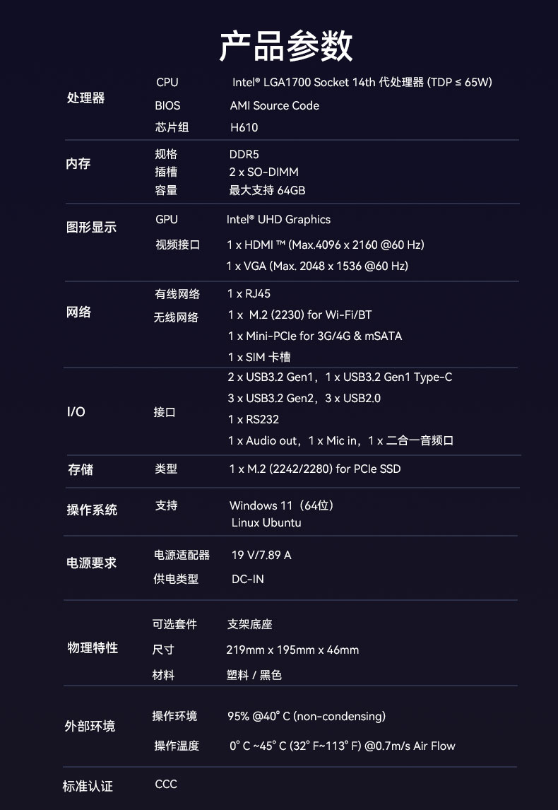 第三,支持第14代英特爾酷睿處理器,擁有8個大核和12個小核,總共20個內核和28個線程,超強性能,高效輸出;