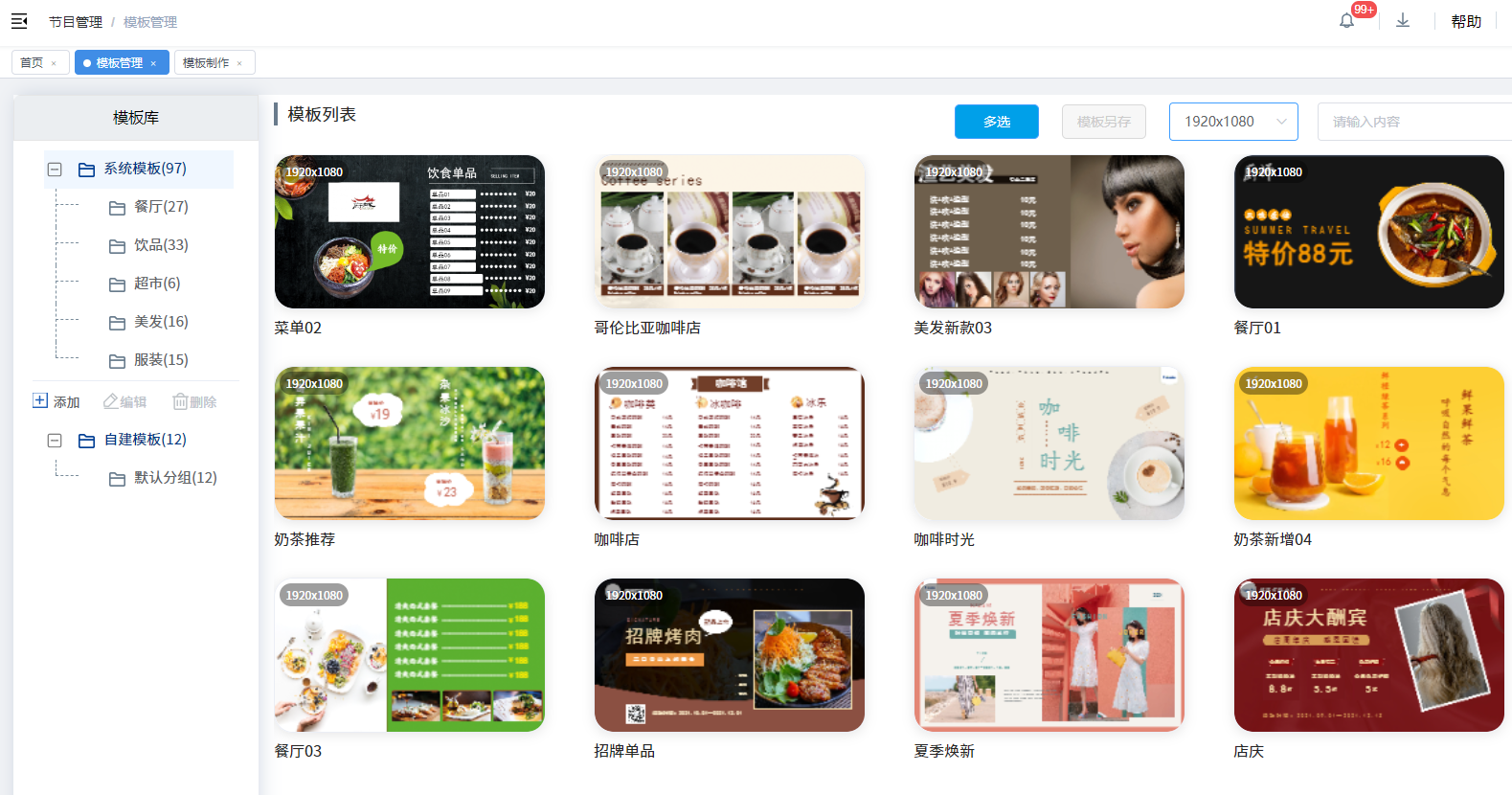 提供海量的模板庫,適應不同屏幕尺寸,可直接編輯包括圖片、音頻、視頻、文檔、混播、網頁等元素,滿足各種場景需求。
