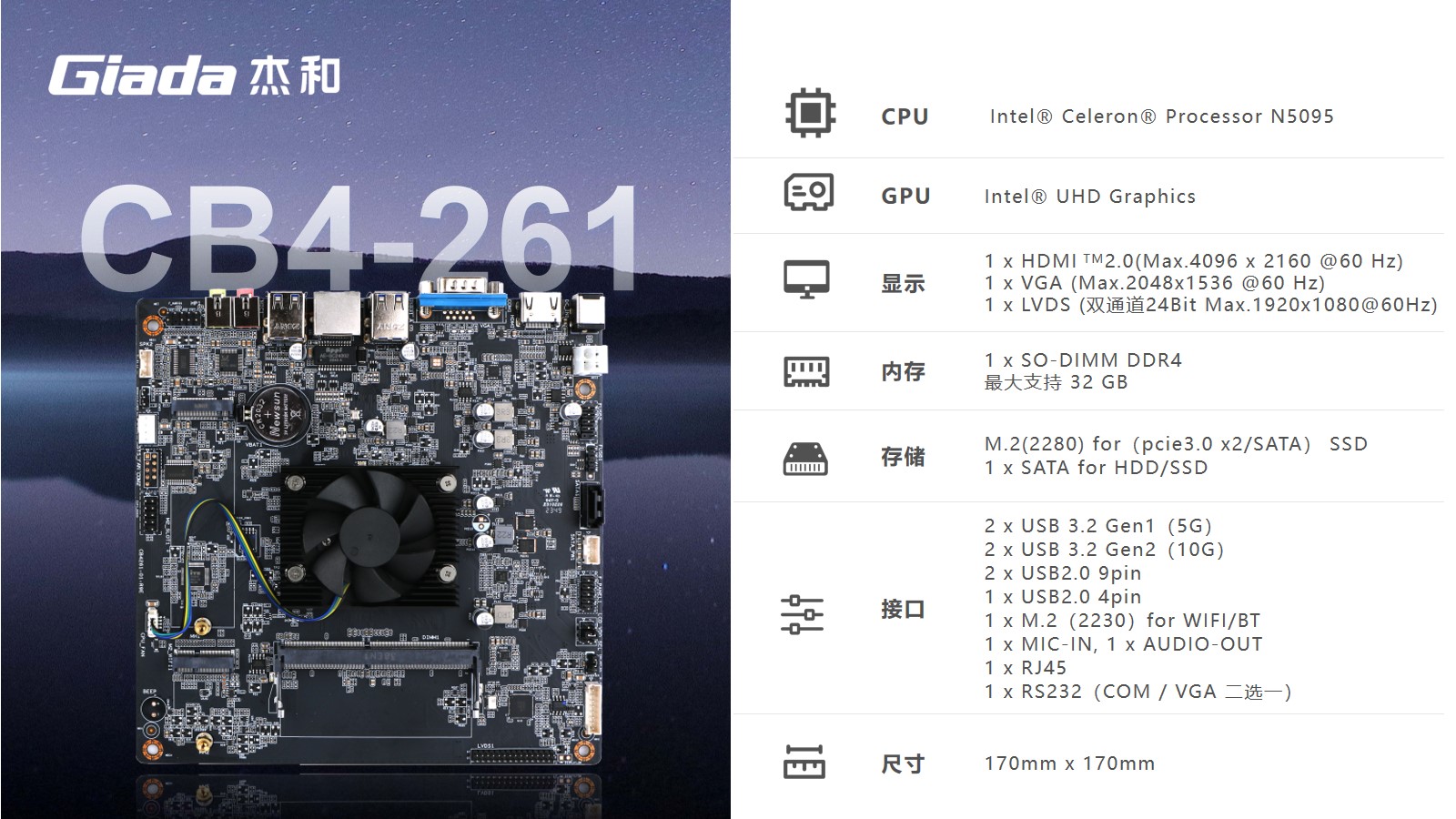 一款高性能的主板是終端機穩定運行的關鍵,基于Intel Jasper Lake平臺的N5095芯片,杰和科技推出了一體機專研主板CB4-261。