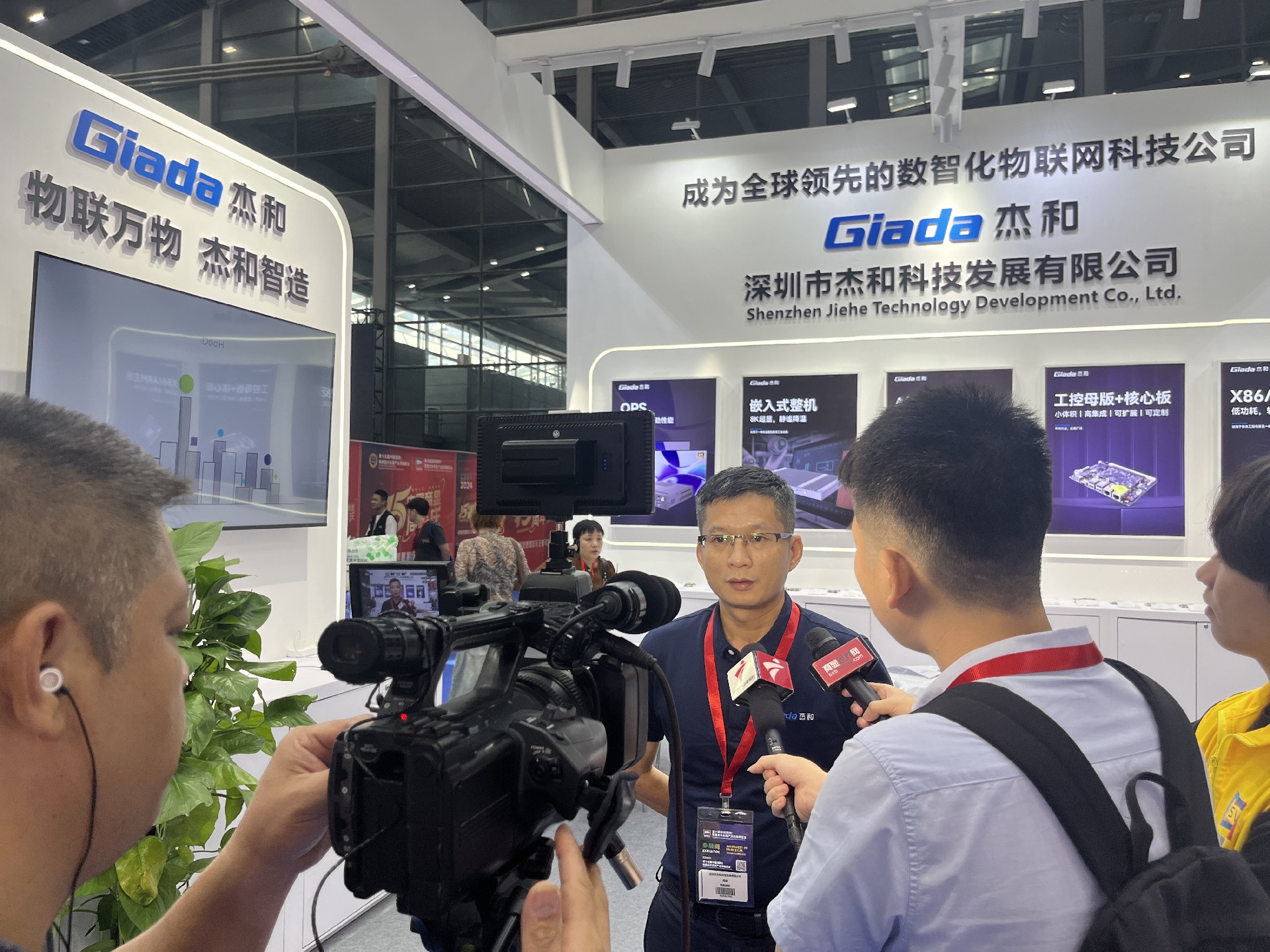在接受廣東電視臺的采訪中,杰和科技的銷售總監表示:“我們非常榮幸能夠參加此次ISVE 展會,并得到媒體的廣泛關注。杰和科技作為行業領先的數智化物聯網技術方案提供商,接下來我們會面向行業未來發展需求,聚焦AI領域,推出更有競爭力的產品,比如具備100tops算力的AI邊緣計算主機,以及基于Intel ultra處理器,具備34tops算力的AI終端計算、AI PC主板等?!?/span>