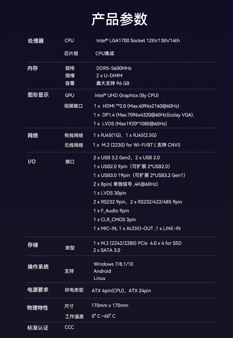 IB5-8131配備了全面的I/O端口陣列,包括USB、顯示等接口;采用6+1相供電,即使在長時間高負載工作時也能維持穩定運行,支持全天候24小時連續運轉,為自助服務終端提供了最強大腦。