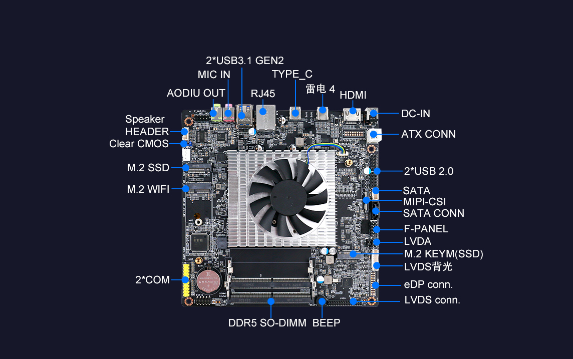 CB4-411支持英特爾Ultra5、Ultra7、Ultra9H系列處理器,支持本地AI計算,擁有34TOPS算力、DDR5高速內存、雷電4接口、2.5 GbE 以太網等功能特性。還在主板功能上進行改良,增加一鍵靜音、一鍵熄屏、一鍵音量加減的功能。