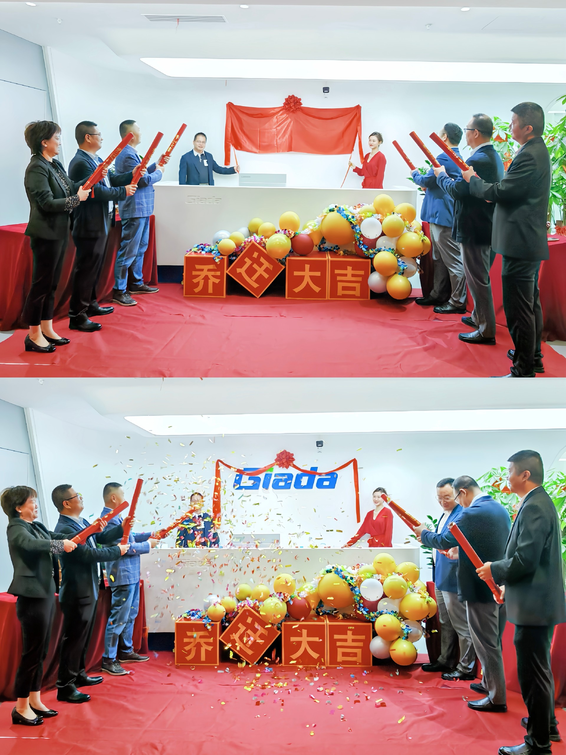 在員工的祝福和期待下,杰和科技總經理林坤杰與副總Linda為嶄新的辦公室揭牌,紅布緩緩揭開,嶄新的杰和科技logo熠熠生輝。與此同時禮炮響起,掌聲齊鳴!在這熱鬧的氛圍中,杰和科技將翻開歷史的新篇章,踏上新的征程。
