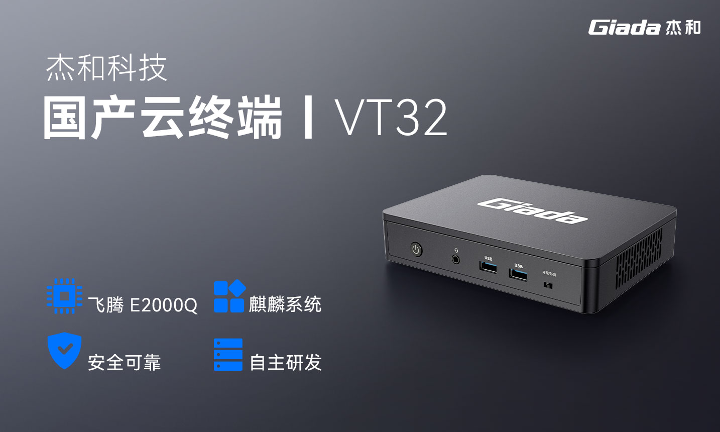 杰和科技推出的云終端VT32,以飛騰騰瓏E2000Q處理器+銀河麒麟系統為核心,為政府、金融、能源、醫療等關鍵行業提供安全、高效、易管理的國產化桌面云終端方案,助力構建自主可控的IT基礎設施。
