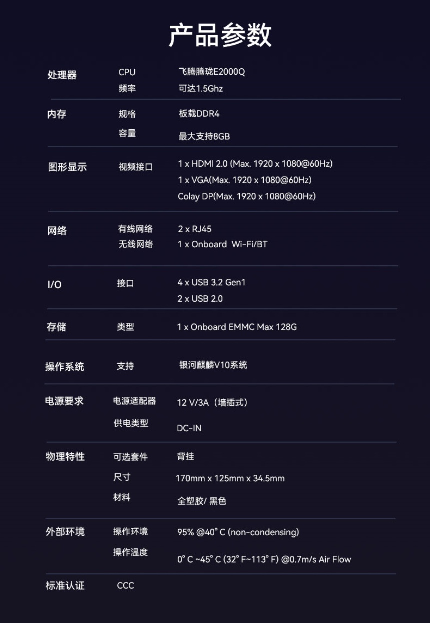 杰和科技云終端VT32搭載了飛騰騰瓏E2000Q處理器和其他國產組件,E2000Q集成2個FTC664和2個FTC310處理器核,主頻達1.5GHz,功耗最大僅11W;