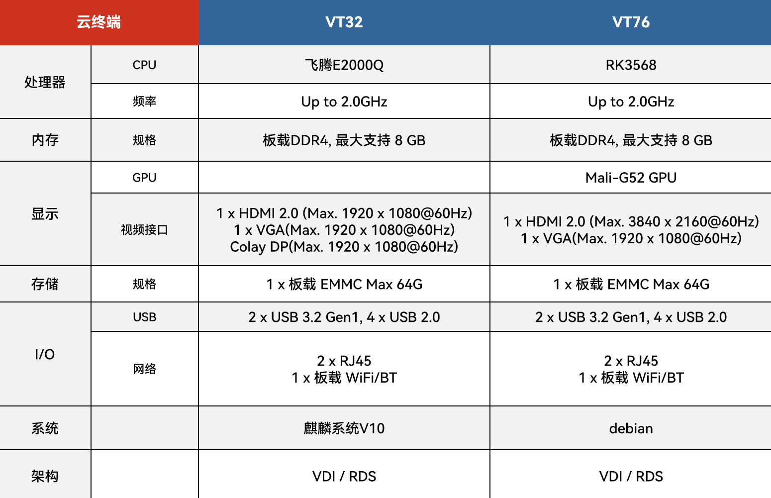 與之外形相似的云終端VT76,支持ARM架構,搭載瑞芯微RK3568處理器,適配debian系統,適用于教育、辦公、開源等應用場景,能夠滿足不同用戶對于軟件安裝和使用的多樣化需求。