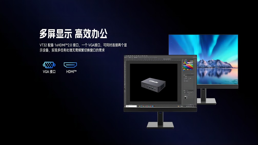 配備兩個RJ45以太網接口,并有多個USB接口,包括USB3.2 Gen1和USB2.0,方便連接各種外設,滿足多樣化的辦公需求;支持多顯示屏輸出,適配監控、多窗口辦公等復雜場景。