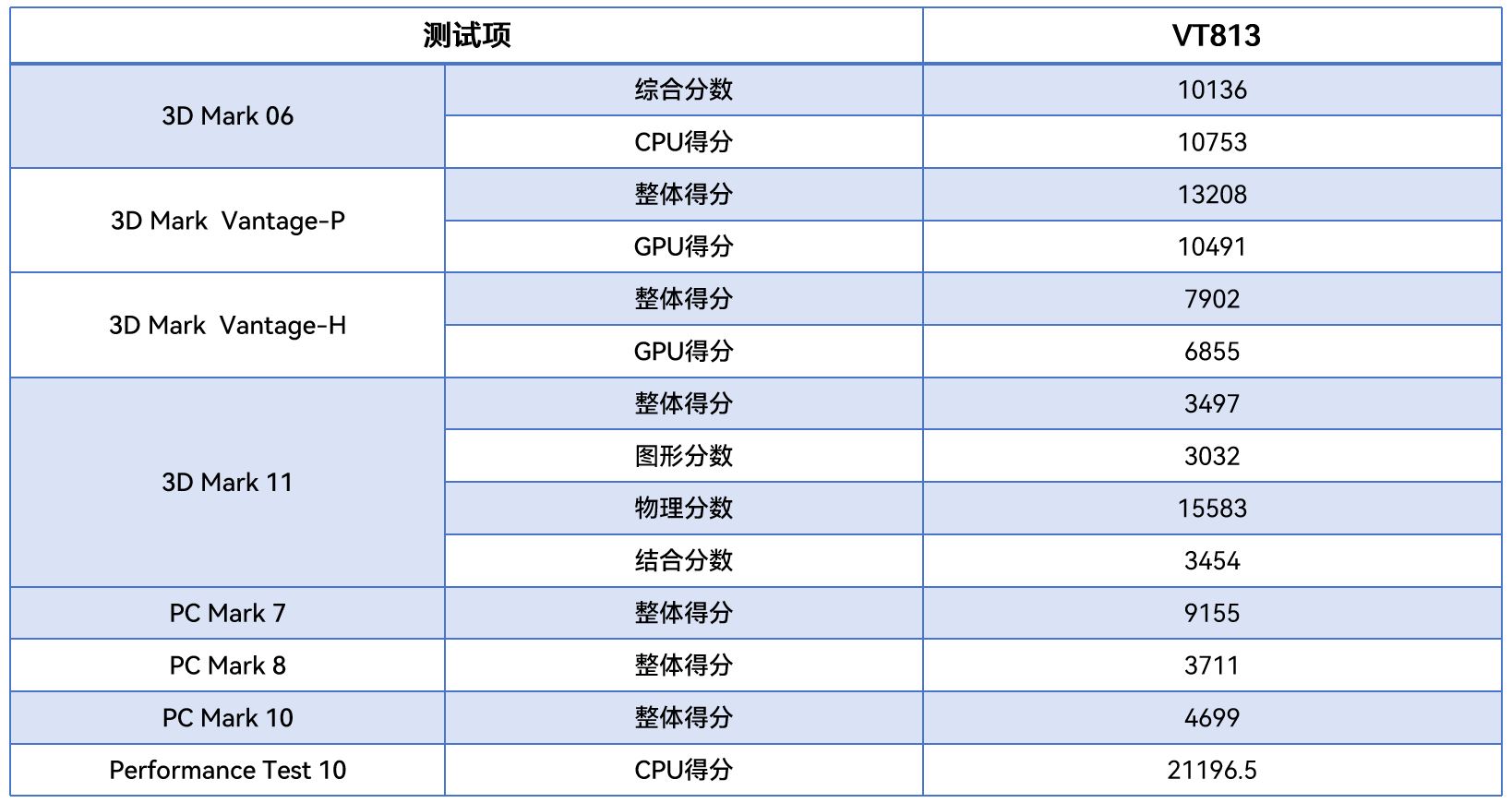 從不同測試軟件的跑分情況可以看出,VT813在圖形渲染、物理運算及整機綜合性能等方面的整體表現優異,下面我們將針對具體的幾項數據來進行詳細分析解讀。