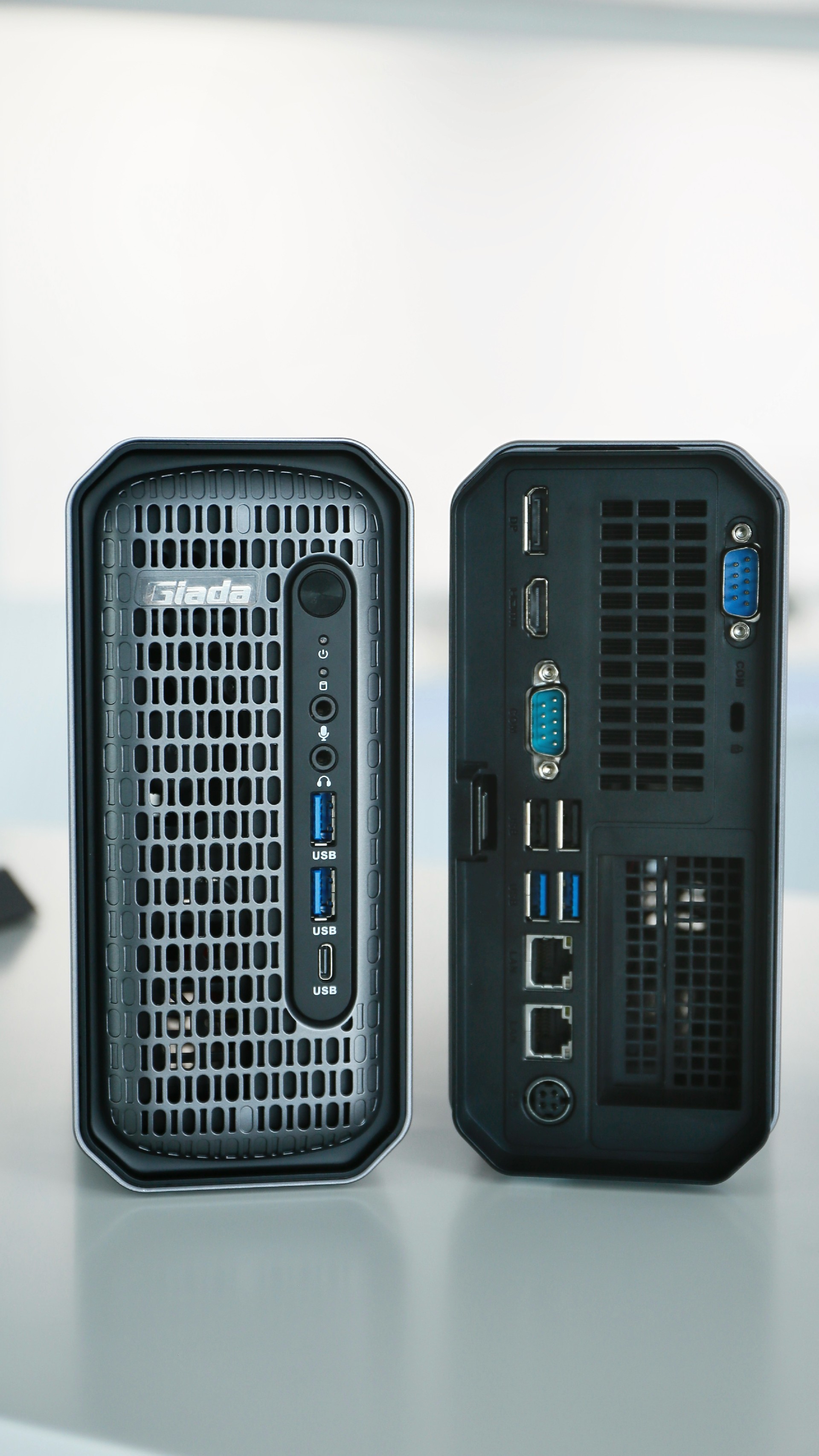 背面則集成了多種專業接口,包括兩個USB 3.2 Gen1接口和兩個USB 2.0接口,可滿足多設備接入需求;1個DP接口與1個HDMI接口支持雙屏高清輸出;另有1個VGA接口,兼容更多顯示設備;雙網口配置,提升網絡穩定性;兩個COM口則適用于工業設備接入,兼具穩定性與擴展性。