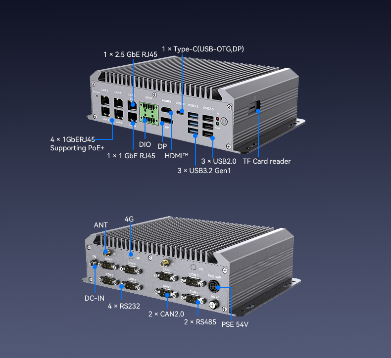 工業計算機AR707搭載了英特爾高性能網卡,可實時上傳加工數據和設備狀態,保障生產精度;并提供4路PoE千兆接口,可同時連接多路高清攝像頭和傳感器,實現供電與數據采集一體化,讓生產線更高效、更可靠。