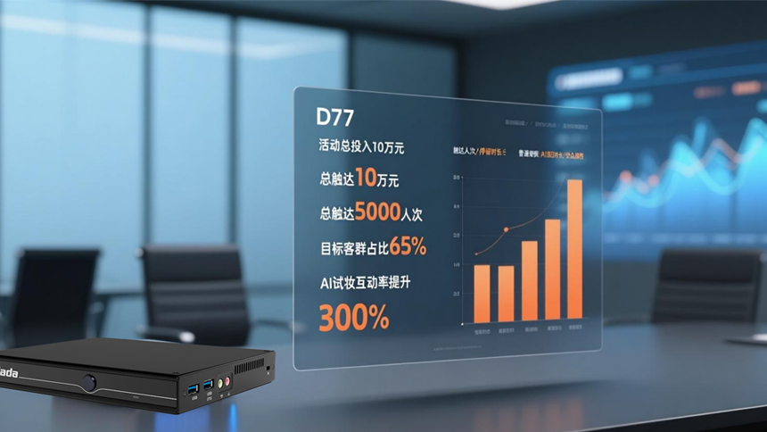 每次營銷活動落幕,品牌商依托D77強大的本地邊緣AI能力,可快速開展深度營銷數據分析。以本次美妝活動為例:總投入10萬元,累計觸達5000人次,其中核心目標客群(25-35 歲女性)占比高達65%,顯著超出預期目標;報告同時顯示,搭載AI試妝功能的內容,其互動率達到普通視頻的3倍。這份數據報告不僅直觀印證了本次活動的成效,更關鍵的是為后續活動策劃提供了精準的數據支撐與優化方向,助力品牌形成營銷策略的閉環迭代。