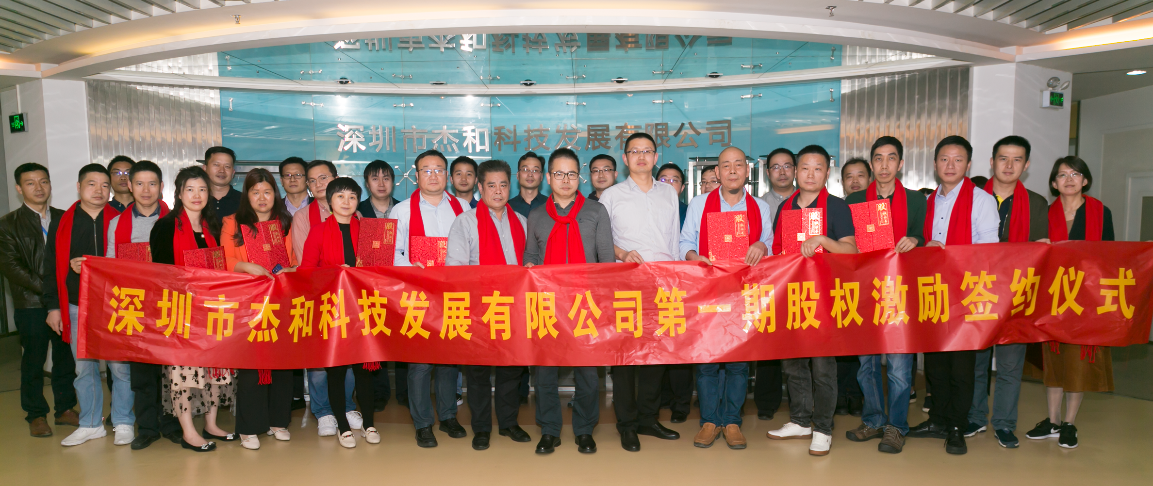 在簽約儀式的開場致詞中,杰和科技總經理林總首先對股權激勵對象表示了特別的感謝,感謝他們對公司的信任與付出;期待大家一起共創,共擔,共享,一起把杰和公司做強做大!去親歷,去見證杰和科技上市的那一天??!并且表示實行股權激勵,對內激勵員工,通過共同奮斗而享有公司發展的未來收益,對外吸引優秀人才加盟;針對上下游廠商,通過股權交換,購買的方式建立穩固的戰略合作關系。