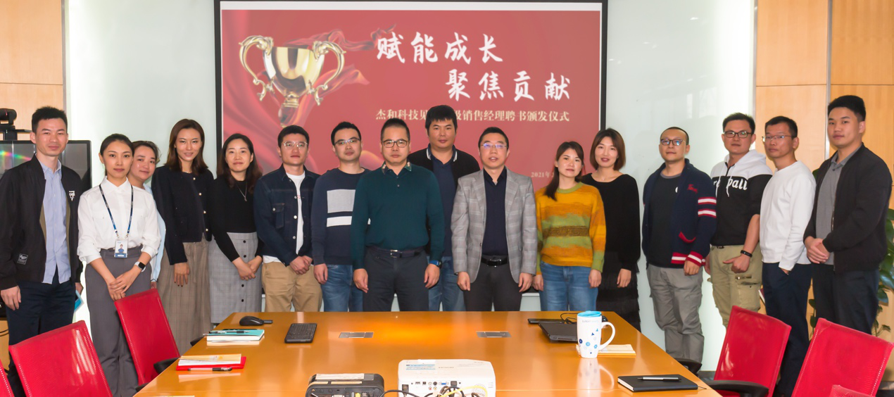 緊接著是聘書頒發環節。公司總經理林總為國際銷售中心三名新任見習高級銷售經理頒發了公司聘書。三位同事表示:“非常感謝公司給予的職業發展機會,同時也會非常珍惜公司為自己制定的專項培養計劃,全力以赴的進行相關項目的學習,爭取成功實現轉身,在工作中努力奮斗,不斷總結,帶領團隊贏得勝利!”