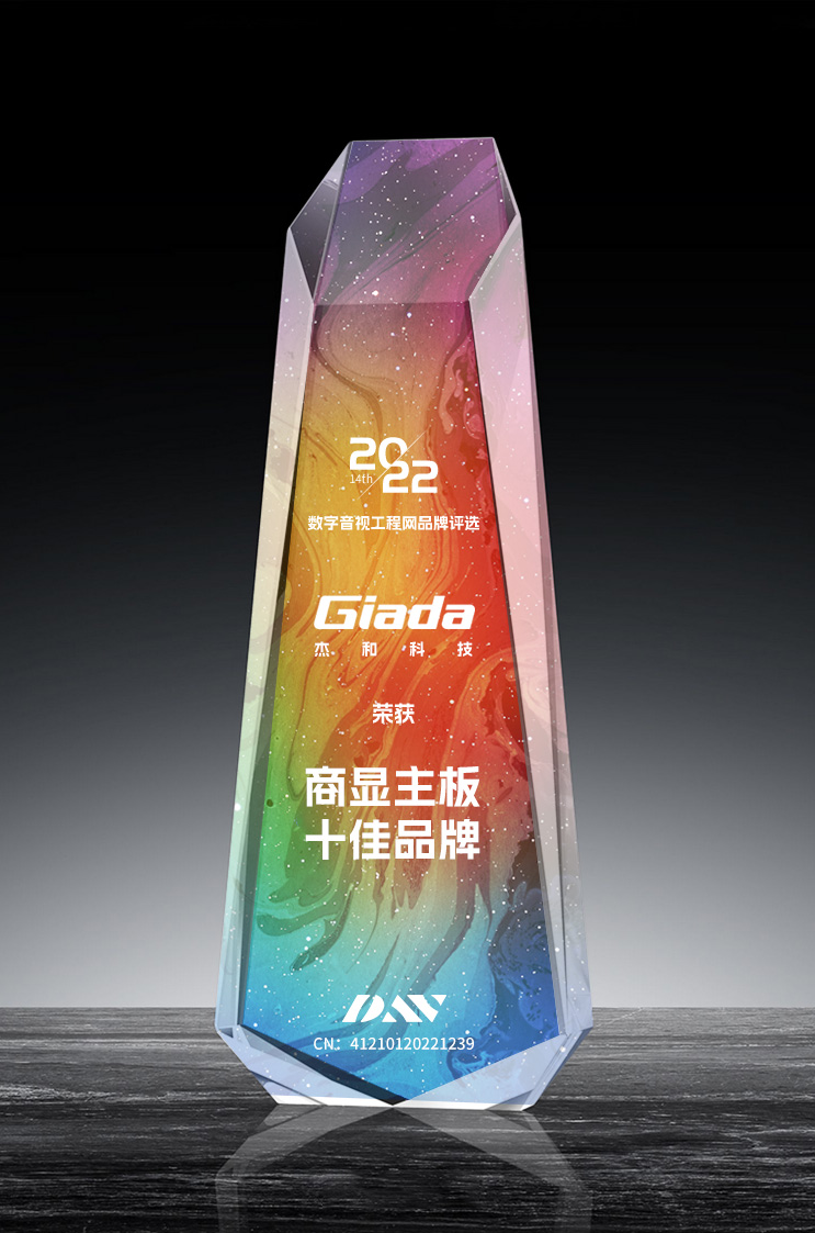 本次年度評選,圍繞品牌影響力、技術領先性、市場號召力和客戶認知度、品牌美譽度等方面綜合評比,經過前期線上線下投票,再由數字音視工程網組織行業內的權威專家多維度進行綜合評審,歷時三個多月,篩選出本年度行業十佳品牌,以表彰年度領先的數字音視頻企業與以及相關產品。評選流程縝密,評選標準嚴苛,展示了全行業對Giada杰和科技的品牌力與服務力的認可。