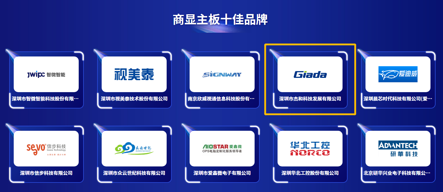 「商顯主板十佳品牌」「數字標牌播放器十佳品牌」