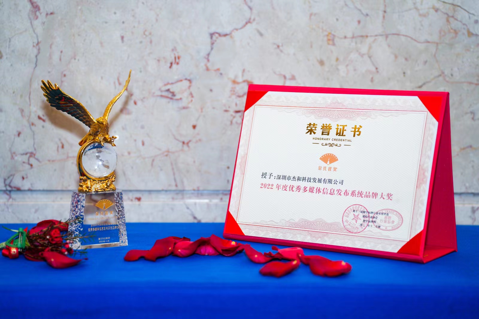 Giada杰和科技憑借突出的市場競爭力、強勁的產品創新力、卓越的產品成長力、領先的品牌影響力,從眾多候選企業中脫穎而出,斬獲“優秀多媒體信息發布系統品牌大獎”、“優秀播放器品牌大獎”兩項榮譽。Giada杰和科技已連續四年登上領獎臺。