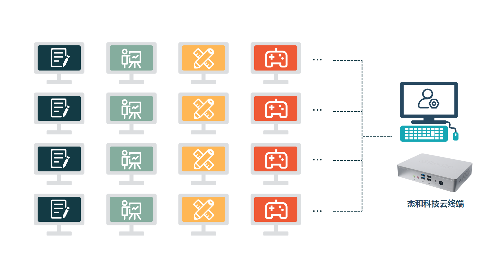 云終端的電腦部署更便捷高效,比如新員工報道,領一臺云終端,配上顯示器、鍵盤、鼠標,插上網線就能辦公,再也不用經過安裝系統、安裝程序、拷貝工作所需數據等工作,耗費人力物力。
