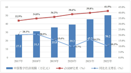 前幾日,國家網信辦發布了《數字中國發展報告(2022年)》。報告顯示,2022年數字中國建設取得顯著成效,數字基礎設施規模大幅提升,而數字經濟成為穩增長促轉型的重要引擎。2022年我國數字經濟規模達50.2萬億元,占國內生產總值比重提升至41.5% 。