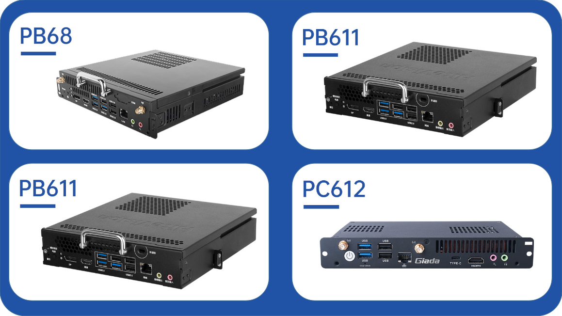 PC612作為杰和主推的OPS產品,采用Intel 12代CPU,擁有更強的性能,能提供更高強度的運算,支持8K視頻顯示,豐富的接口,在提供超高清流暢使用體驗的同時,滿足用戶多應用的拓展,滿足多場景使用需求。