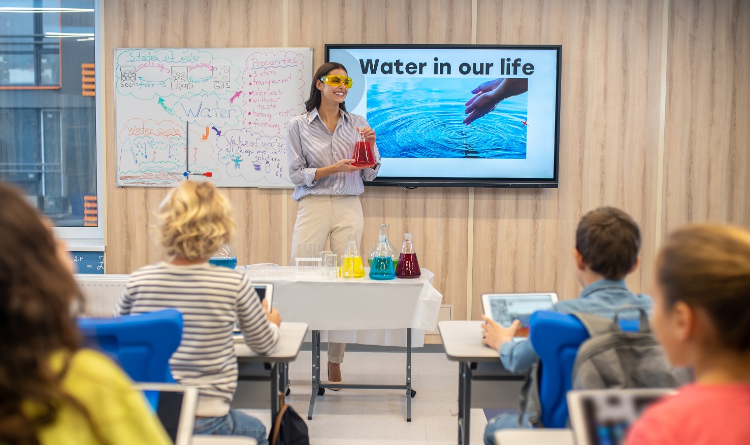 在傳統課堂教學的班級授課中,教學主要通過書本的文字圖片、老師的講解進行知識輸送,教學模式單一,課堂缺乏生動性和主動參與的積極性。而杰和構建的數字化教學環境中,通過電子白板的應用,用“沉浸式+體驗式”的教學方式,趣味性且可視化的展示課程內容,將傳統的教室升級為更為智能的數字化“教學空間”,從而推動教學模式的數字化變革。