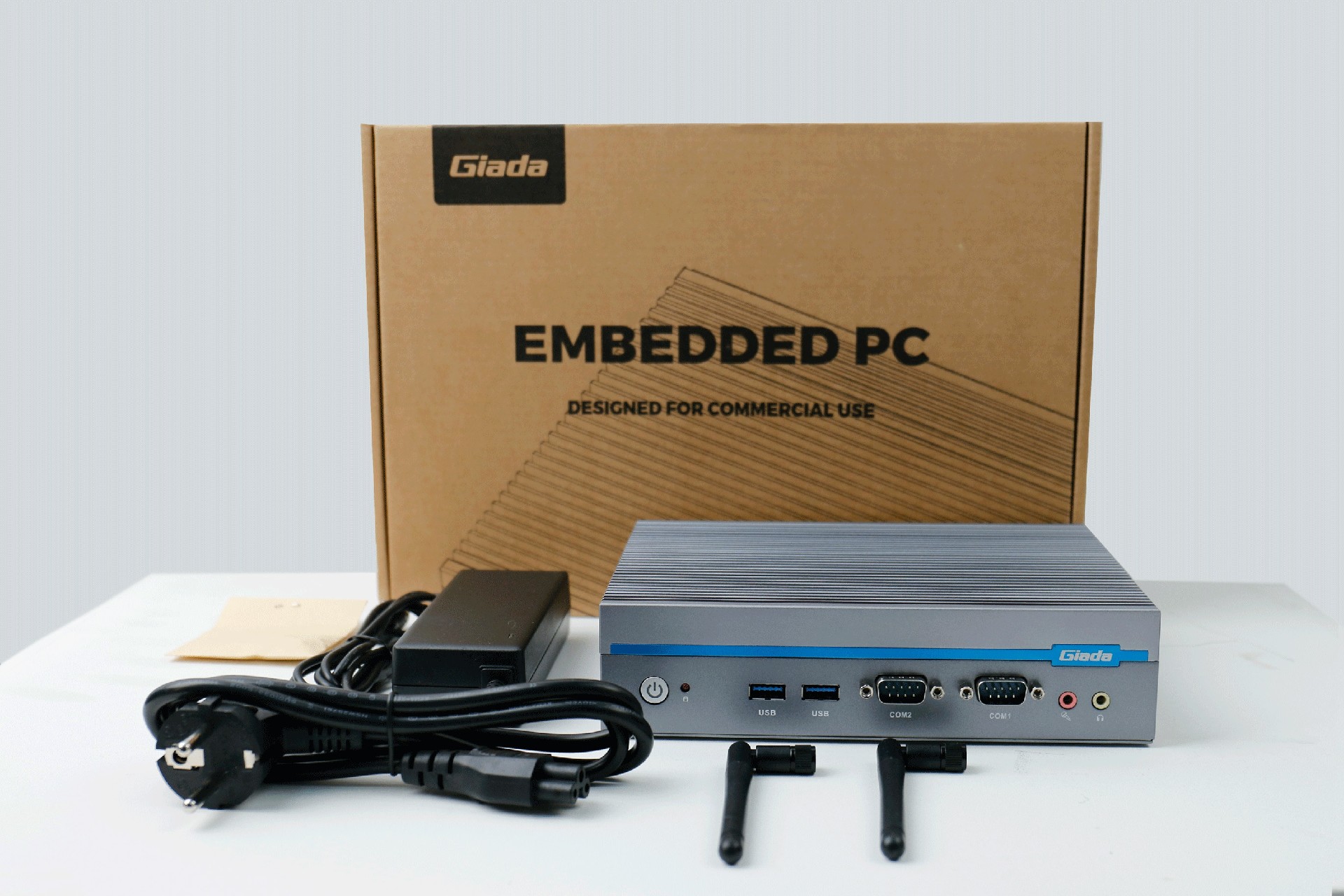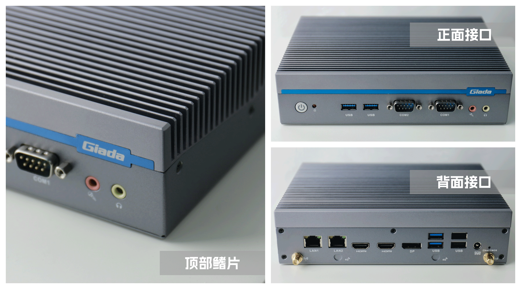 嵌入式整機AE613外包裝采用環保材料設計,內部配備適配器、AC線、天線棒、螺絲包,滿足通用需求,整機外觀機殼頂面采用一體式鋁板增高的鰭片散熱設計,整機結構采用全鋁設計保證散熱與抗壓性,通過杰和特有無風扇靜音散熱設計使整體散熱效果非常優秀,同時營造出極致安靜的工作和使用環境,無噪音,更防塵。