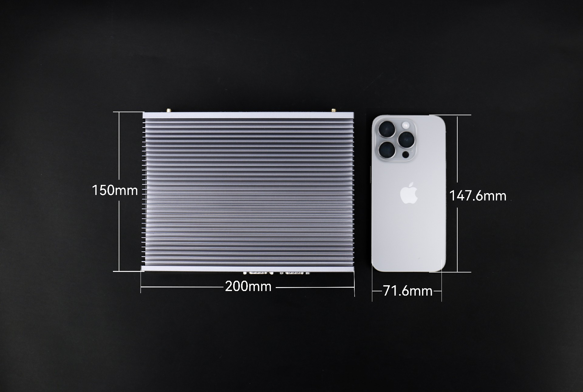 杰和AE613的三圍尺寸是200 mmx 150 mmx50 mm,與iphone15的尺寸對比,寬度僅比其高度多2.4毫米,體積僅有1.5L。