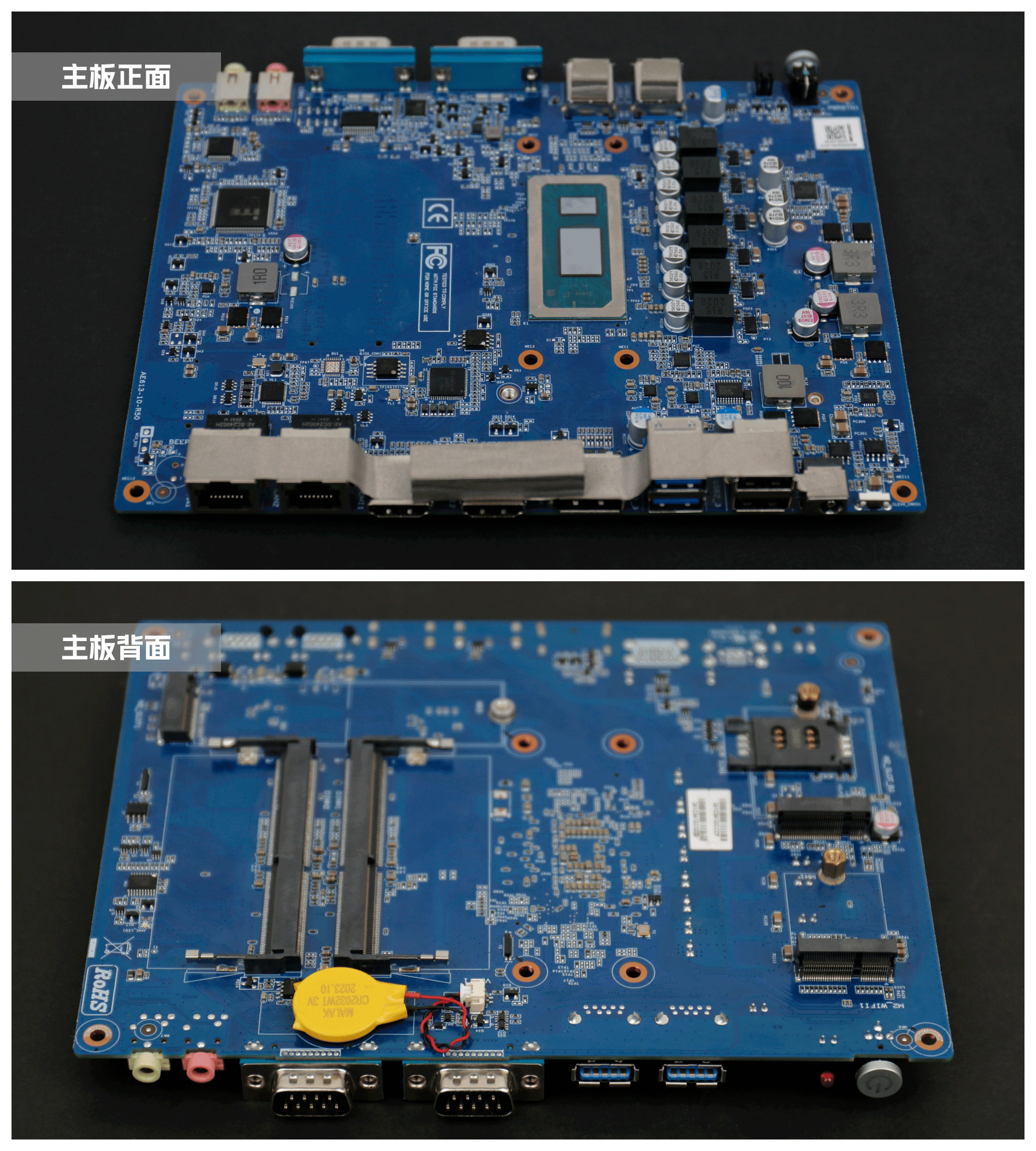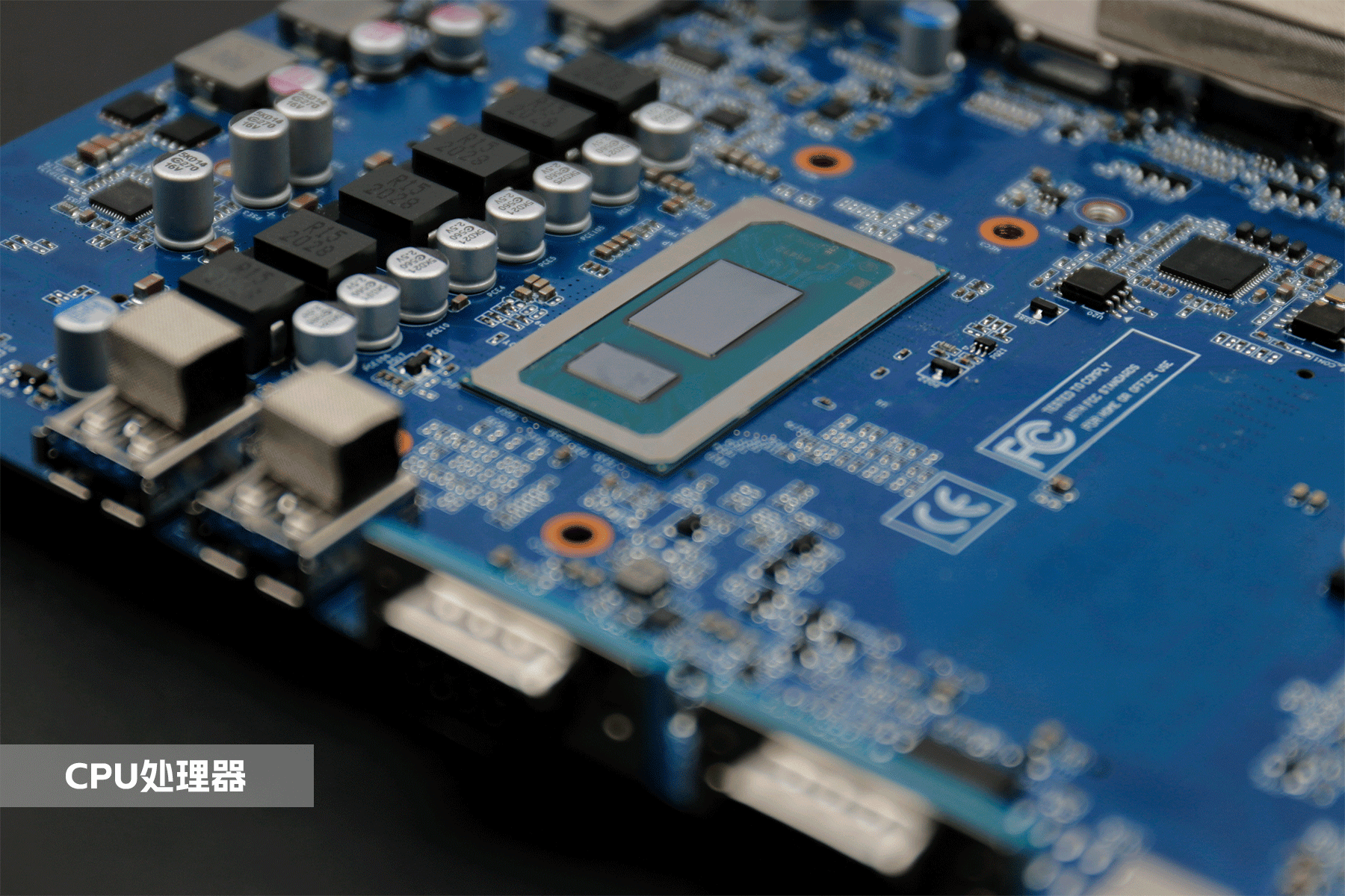 主板是杰和AE613的核心部件,整體配色是常規的深藍色,由杰和自有工廠傾力打造,CPU采用板貼的形式,表面涂了一層散熱膏用于導熱,可以支持12/13代Intel Alder/Raptor lake-U的處理器,默認配置為Intel® CoreTM  i5-1335U處理器。