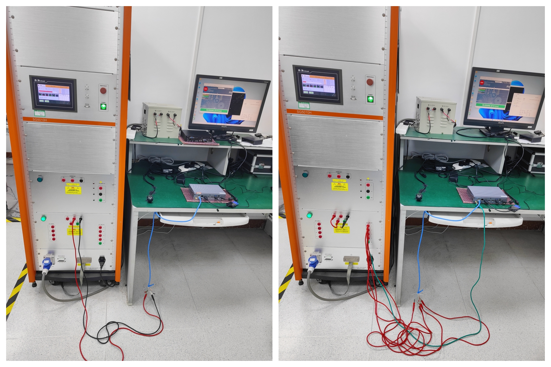 測試杰和AE613受到外部電壓變化,是否會影響正常運作,需要借助杰和專業設備全自動雷擊浪涌發生器進行測試,主要測網口以及電源線在受到外部電壓影響時,是否能正常工作。試驗結束后,AE613能正常工作,無功能的喪失以及存儲數據的丟失,并且通信連接正常,測試通過。