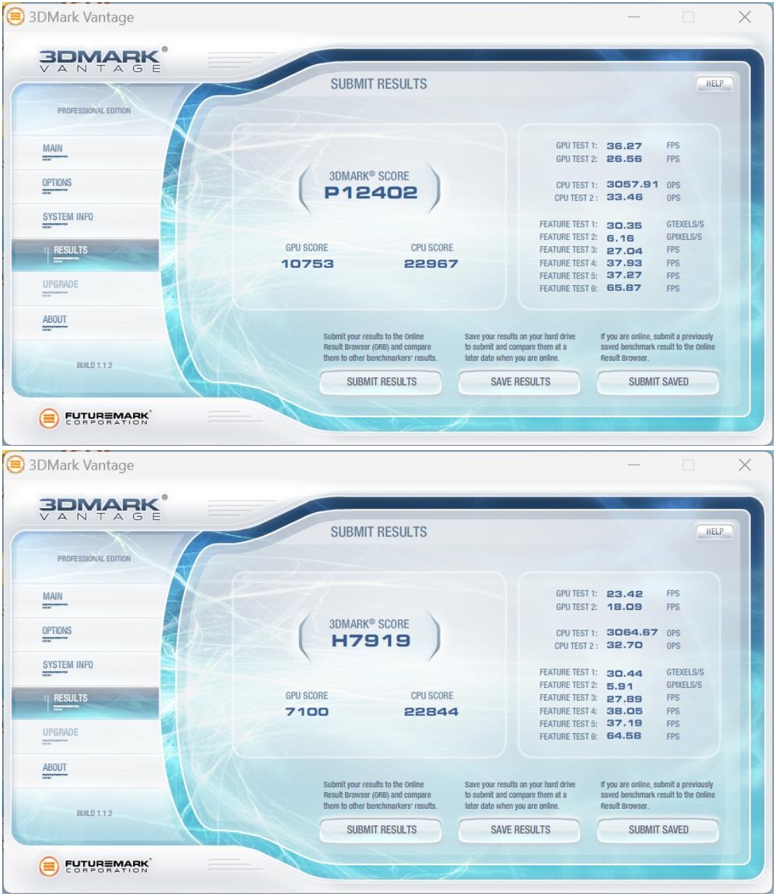 3DMark Vantage一款3D圖形性能評測軟件,主要用于評測電腦的顯卡和處理器的性能。我們按照畫質等級,記錄了性能級(Performance,P)和高端級(High,H)兩份數據。其中,Performance的綜合得分為P12402,High的綜合得分為H7919,表現不錯,這個成績已經完全能夠滿足主流用戶的需求了。