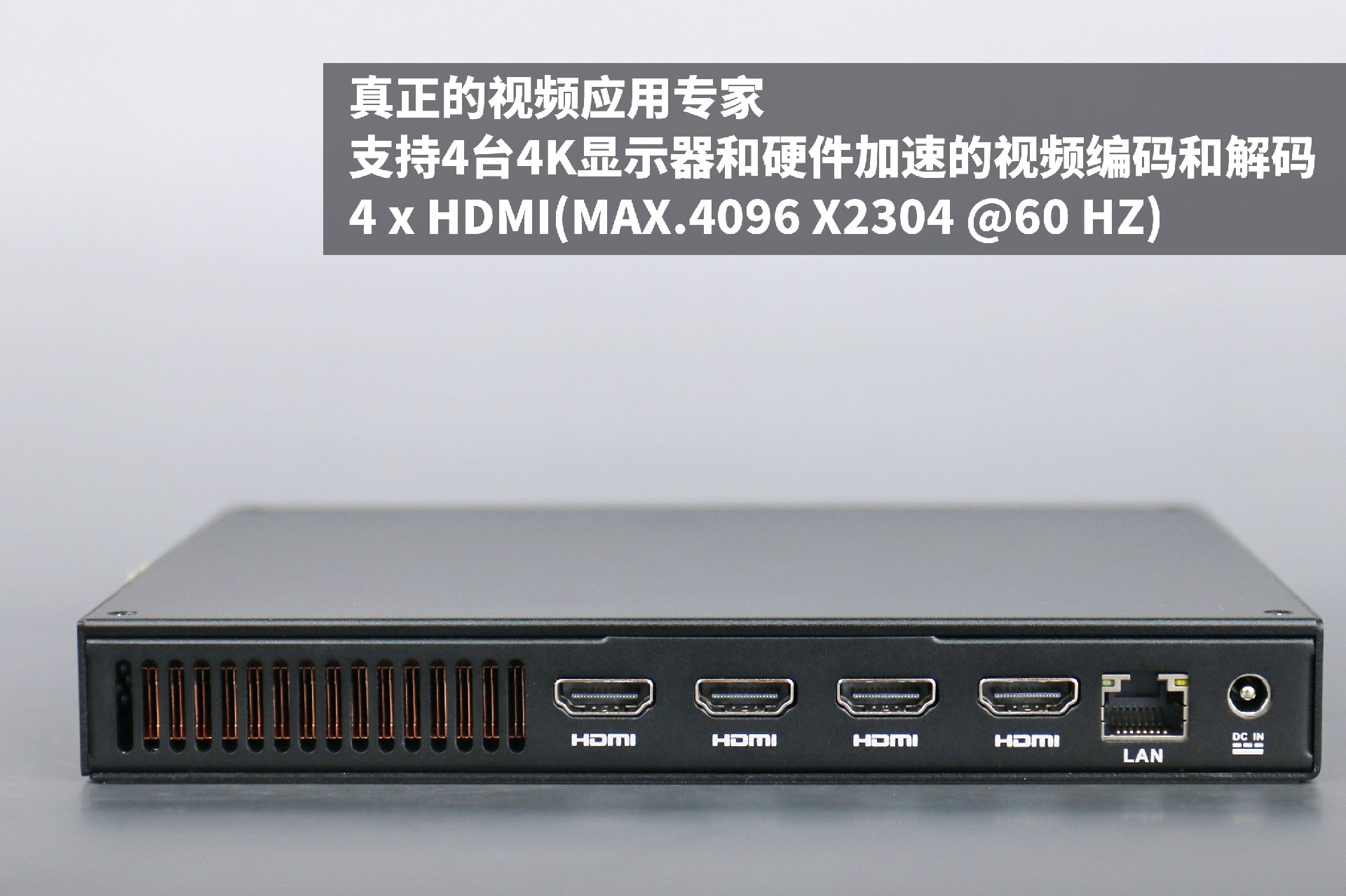 支持4 x HDMI 2.0接口,提供多達4屏4K顯示(4096 x 2304@60Hz);支持1 x RJ45千兆網口,1 x E-Key M.2 (2230) for Wi-Fi/BT, 支持Wi-Fi 5, Wi-Fi 6, Wi-Fi 6E (CNVi),具備強大的網絡通信能力。支持1 x USB Type-C3.1,1 x USB3.1 2 x USB2.0,1 x RS232,1 x二合一音頻接口,拓展能力豐富,可以連接會議大屏、攝像頭、麥克風、音響、U盤、擴展塢、無線投屏等設備。