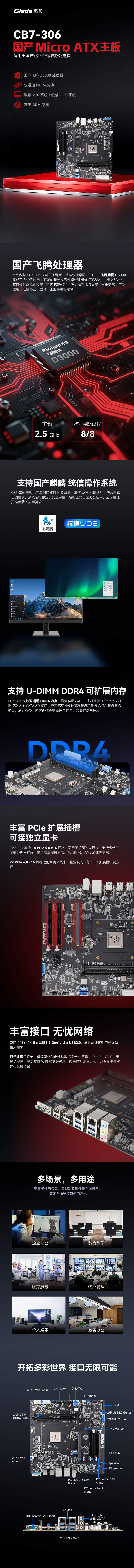新品第二彈|基于飛騰D3000處理器,杰和科技推出Micro-ATX主板CB7-306