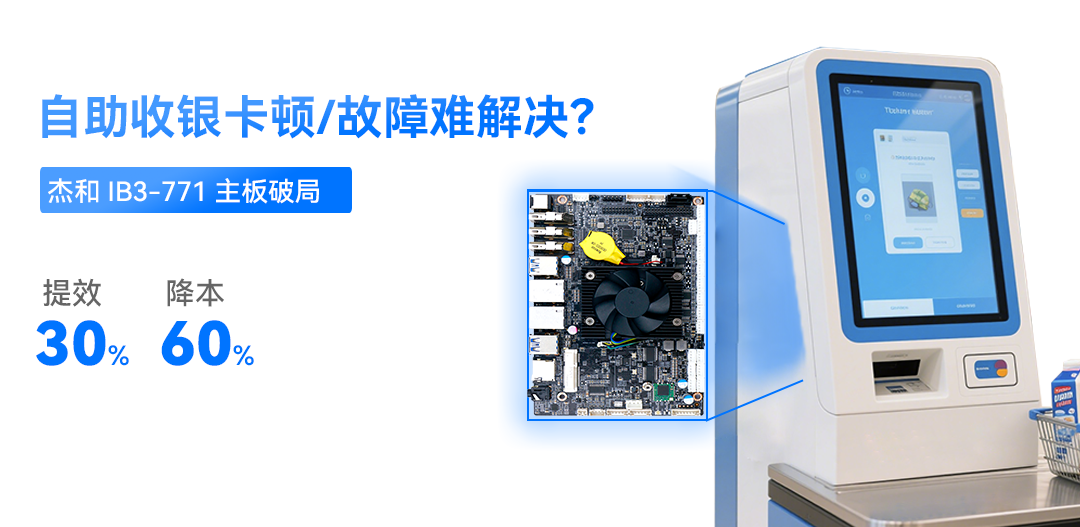 自助收銀卡頓/故障難解決?杰和 IB3-771 主板破局!提效30%,降本60%