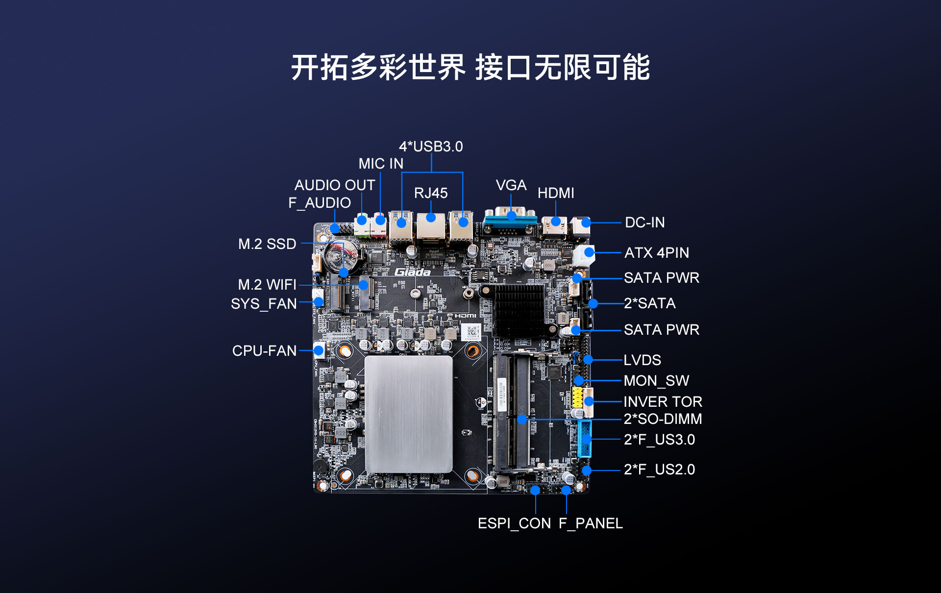 | 內部I/O | 接口 | M.2(2088) for(pcie4.0 x4/SATA3.0) SSD M.2(2230)for WIFI/BT 2 x USB2.0 9pin 1 x CLR_CMOS插針3pin 1 x MON-SW 5pin |