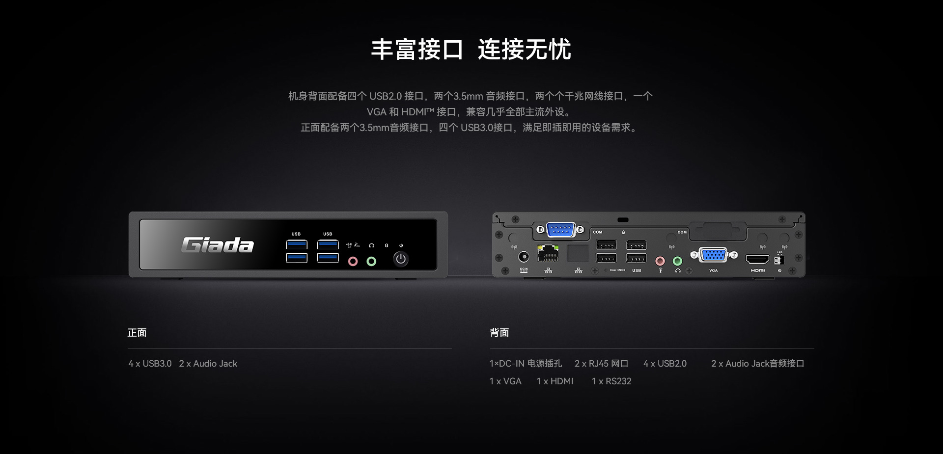 | 音頻接口 | 1 x Audio out,1 x Mic in,1 x 二合一音頻口(后置) | |