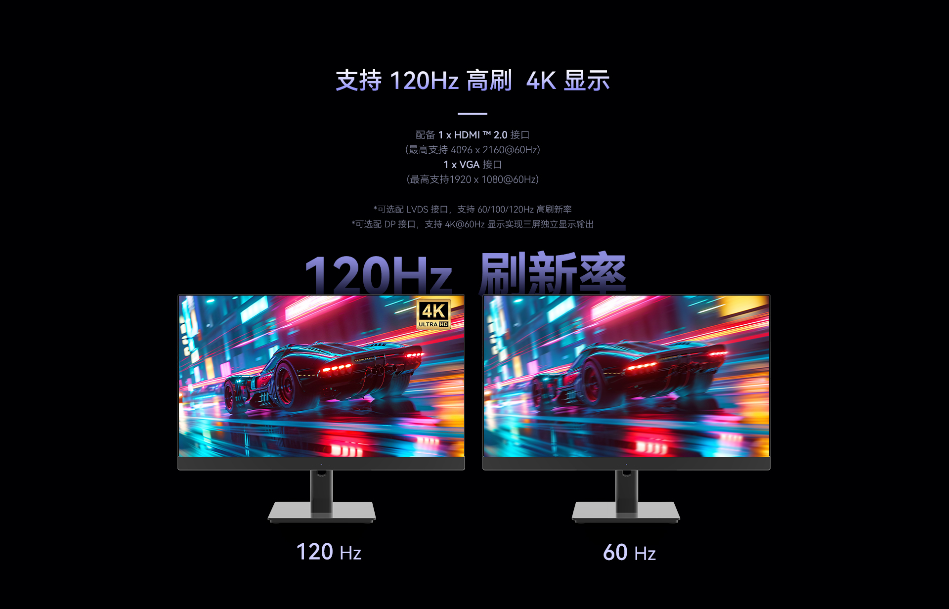 支持重力感應(可選),LVDS支持120Hz高刷(可選)
