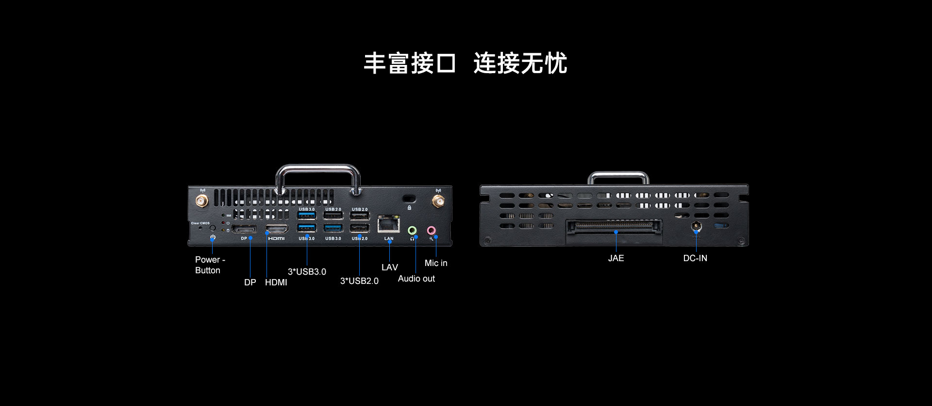 | 視頻接口 | 1 x HDMI (Max. 4096 x 2160@60Hz) 1 x DP (Max. 4096 x 2304@60Hz) JAE端:1 x HDMI (Max. 4096 x 2160@60Hz) | |