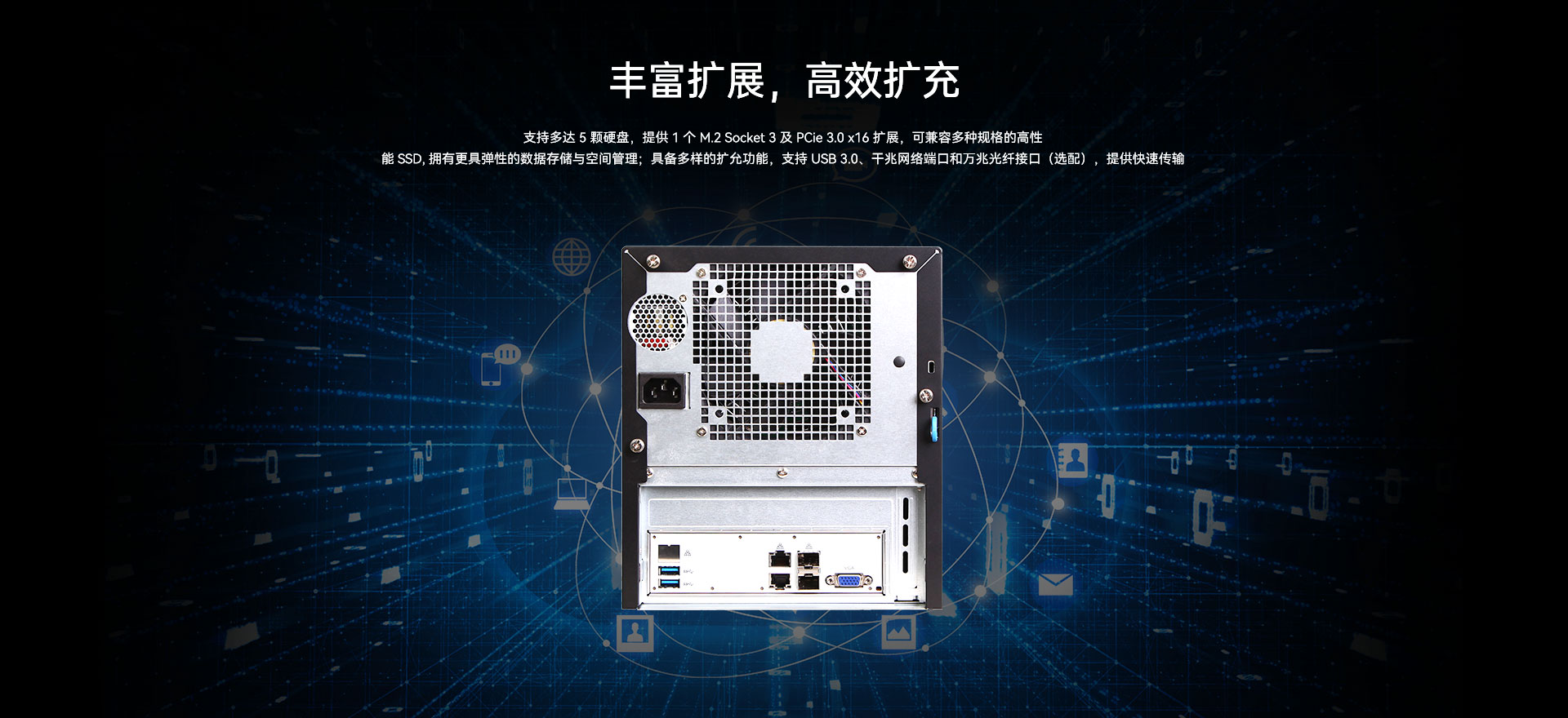 | 存儲 | 接口1 | 4 x 3.5英寸SATA硬盤(支持熱插拔)1 x 2.5英寸SATA硬盤(不支持熱插拔) |